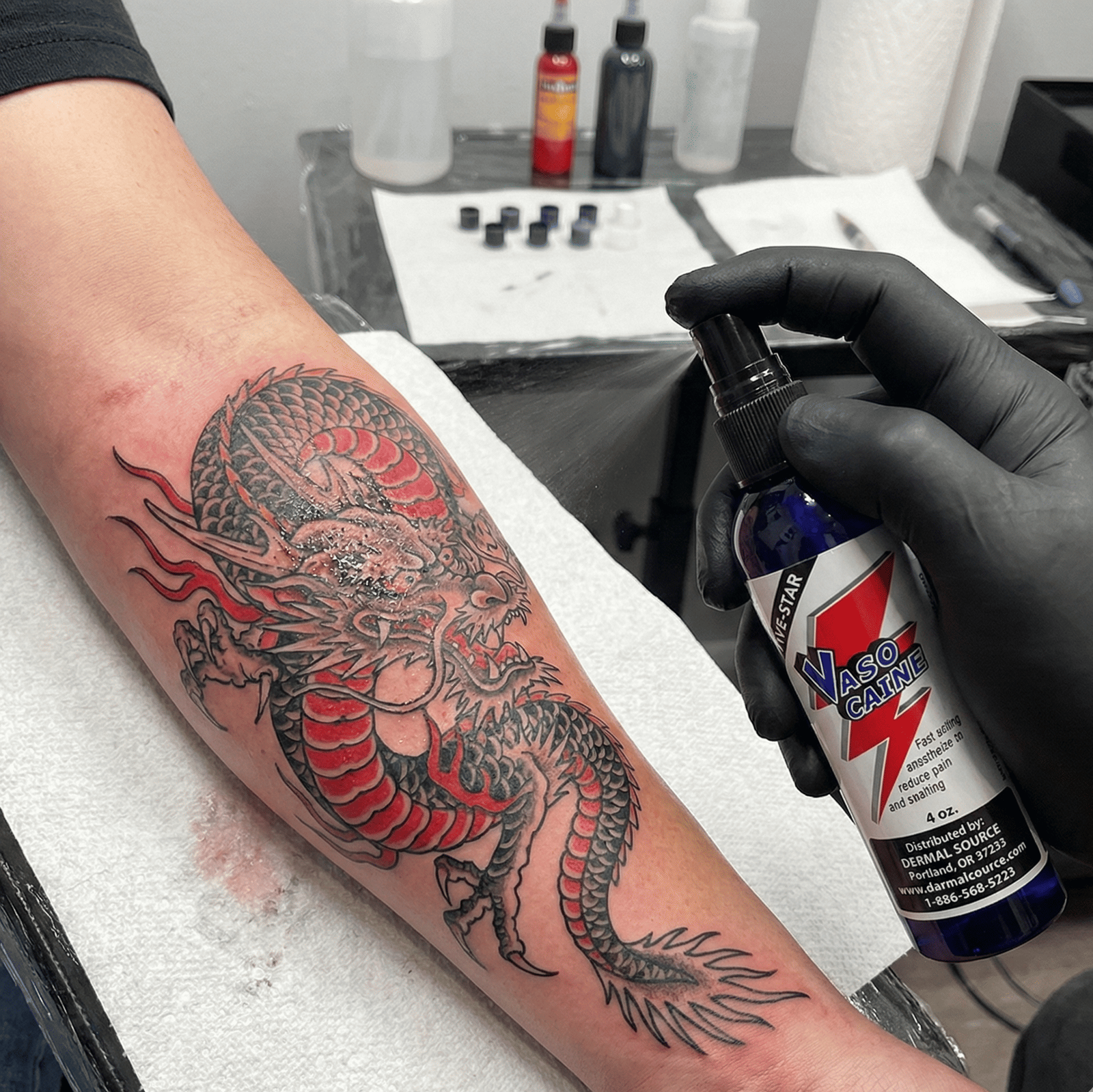 Questo spray non deve essere utilizzato prima della sessione. Se hai bisogno di qualcosa da applicare prima dell’appuntamento, ti consiglio di utilizzare una crema anestetizzante specificatamente destinata a questo scopo. Questa crema potente ed altamente efficace deve essere applicata sulla pelle circa 1 ora prima della procedura per garantire il massimo effetto. Quindi, per il pre-tatuaggio, opta per una crema anestetizzante.